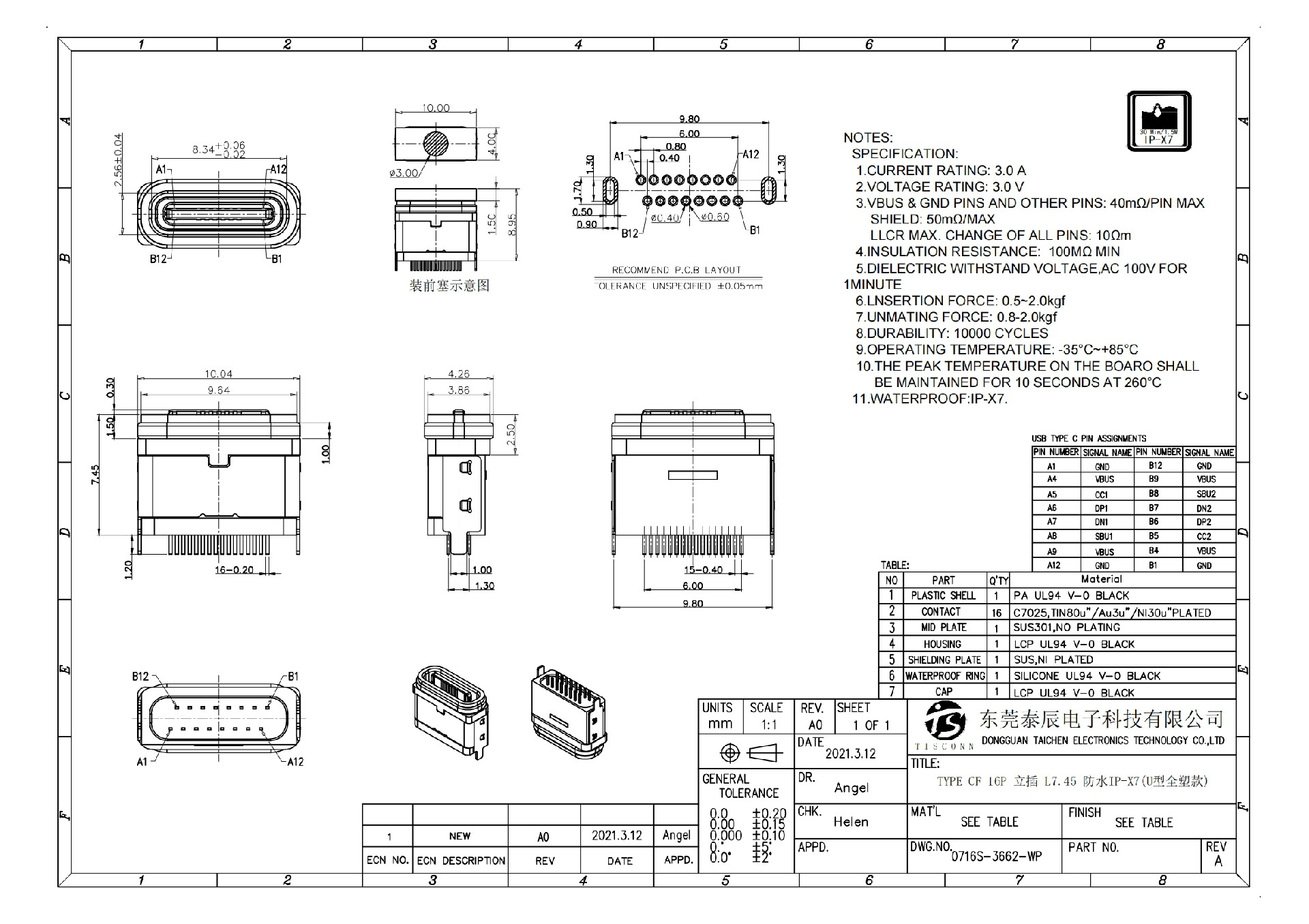 0716S-3662-WP TYPE CF 16P 立插 L7.45 防水IP-X7(U型全塑款)