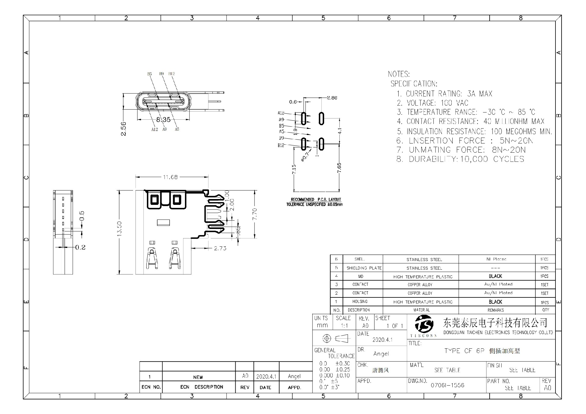 0706I-45B0 TYPE CF 6P DIP 四腳魚叉?zhèn)炔寮痈咝蚅=13.5