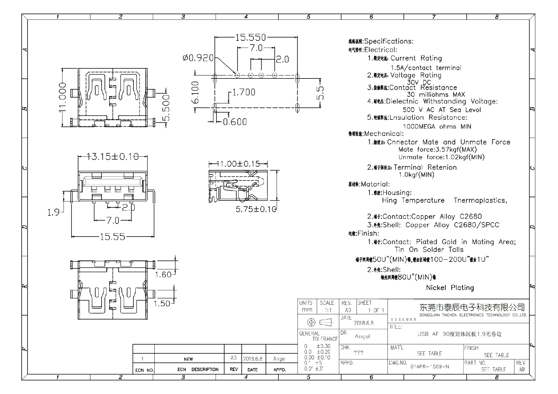 01APR-1509-N USB AF 90度短體沉板1.9無卷邊