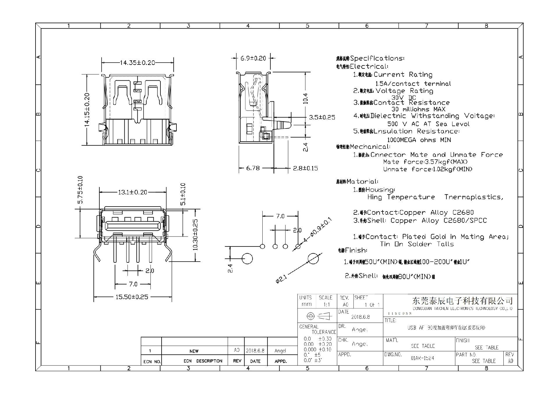 01AR-1524 USB AF 90度加蓋彎腳有卷邊(膠芯反向)