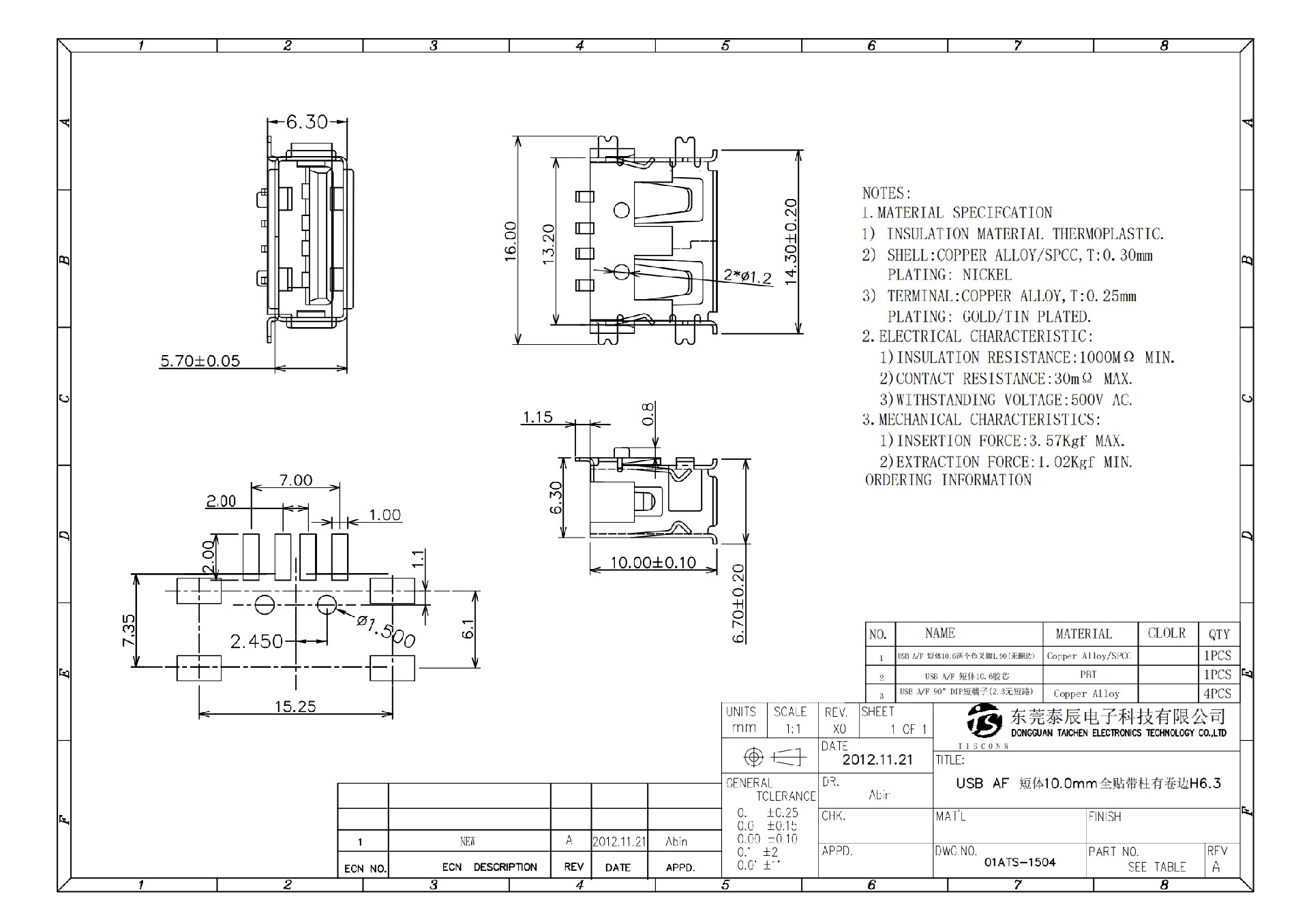 01ATS-1504 USB AF 短體10.0全貼帶柱有卷邊6.3