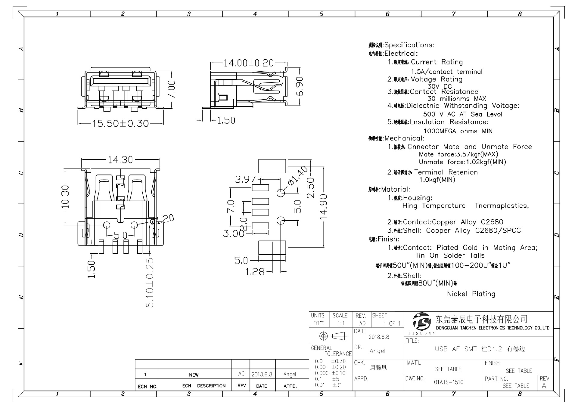 01ATS-1510 USB AF SMT 柱D1.2 有卷邊