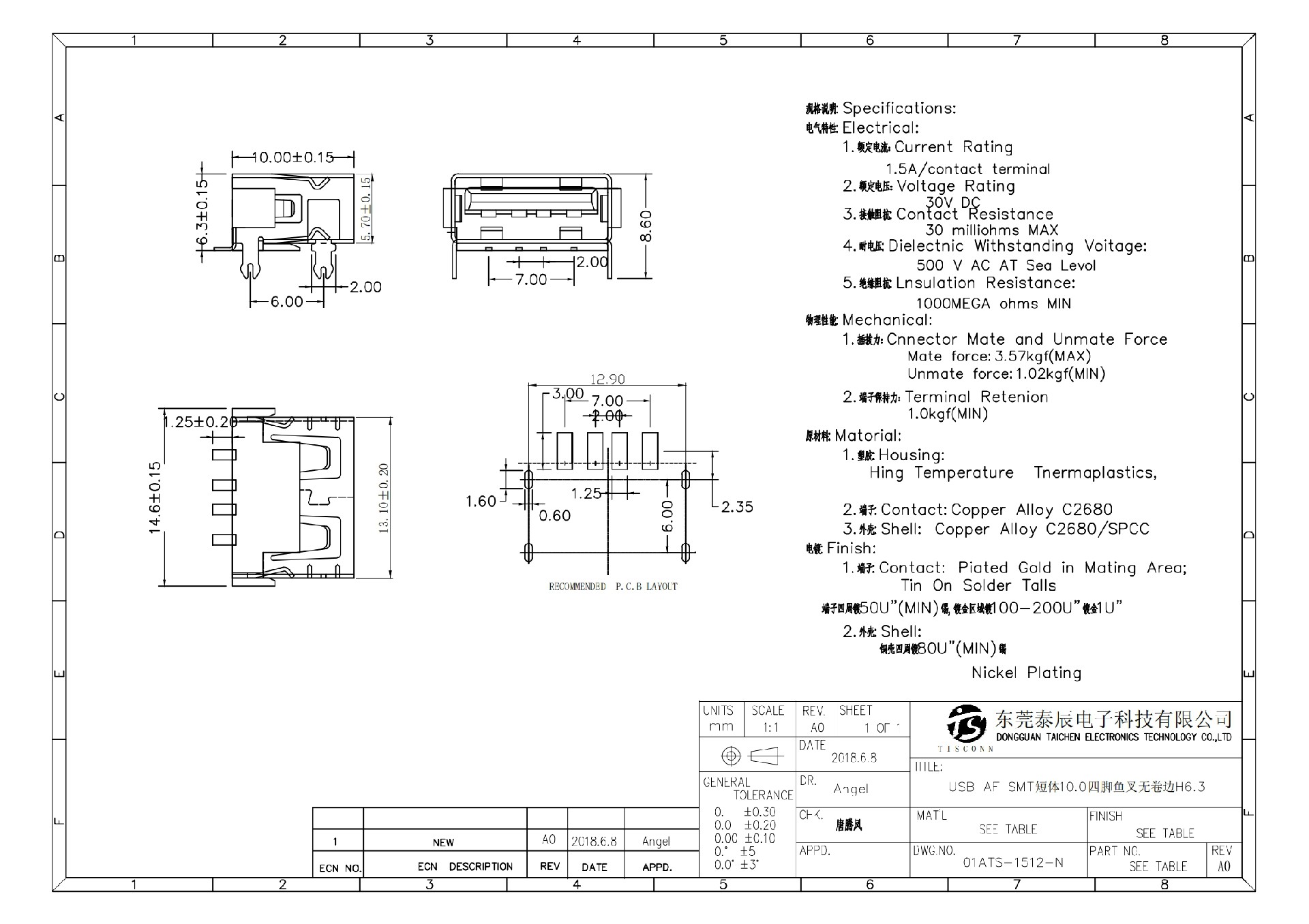 01ATS-1512-N USB AF SMT短體10.0四腳魚叉無卷邊H6.3
