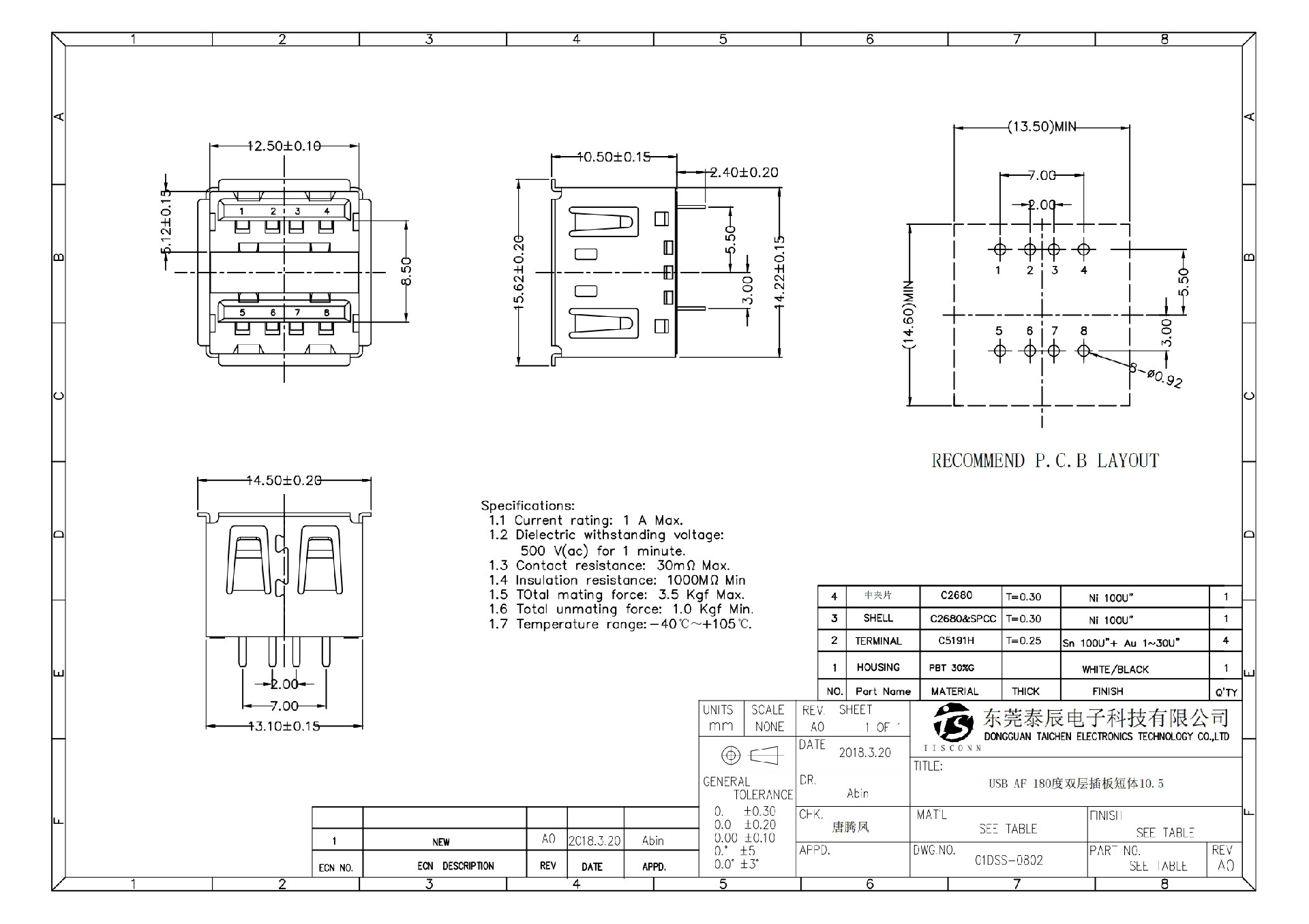 01DSS-0802 USB AF 180度雙層插板短體10.5 無腳